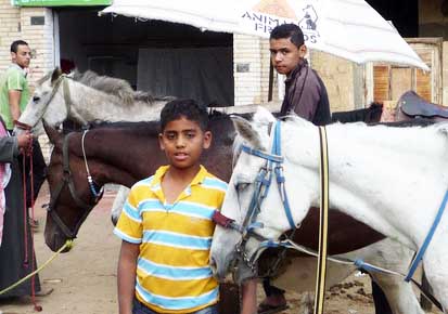 Ahmed El Sherbiny, Chairperson of ESAF (the Egyptian Society of Animal Welfare) writes: “Since 2005, ESAF has conducted a weekly clinic in the Pyramids area for horses, donkeys, and now camels. However, after the revolution [when the horses were starving first due to civil unrest and the curfew, then because of the collapse of tourist trade income], we increased the clinic to three times a week and included feeding….