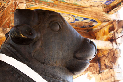 At Brihadeshwara Temple in Tamil Nadu, Nandi, the sacred bull, guards the entrance, just as he has guarded the entrances to all Shiva temples for thousands of years. Like the cow, the bull has always been revered and honored in India.