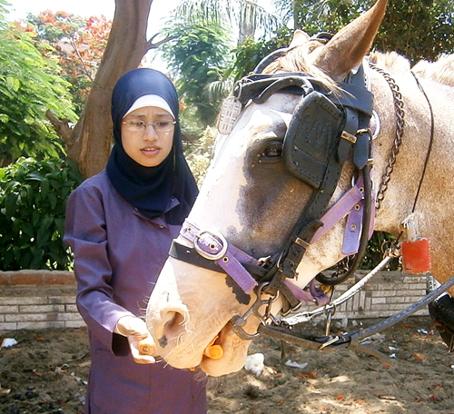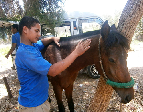 In June, ESAF conducted 7 separate mobile clinics at the pyramids area – providing shots for internal and external parasites and treating all kinds of common injuries and diseases for the working horses and camels. The clinics also provided feeding for the most urgent cases.
