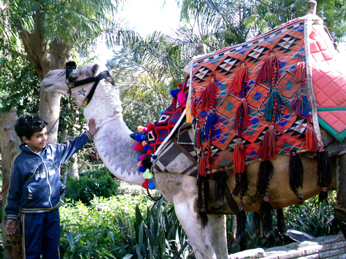 A young boy with one of his family’s camels.