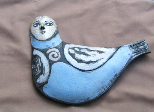 This ethereal, angelic dove was created by Barbara Harnack, whose artwork has an otherworldly touch, especially the faces. Raku is a special technique of firing ceramics, originally discovered in the sixteenth century by a Korean potter.